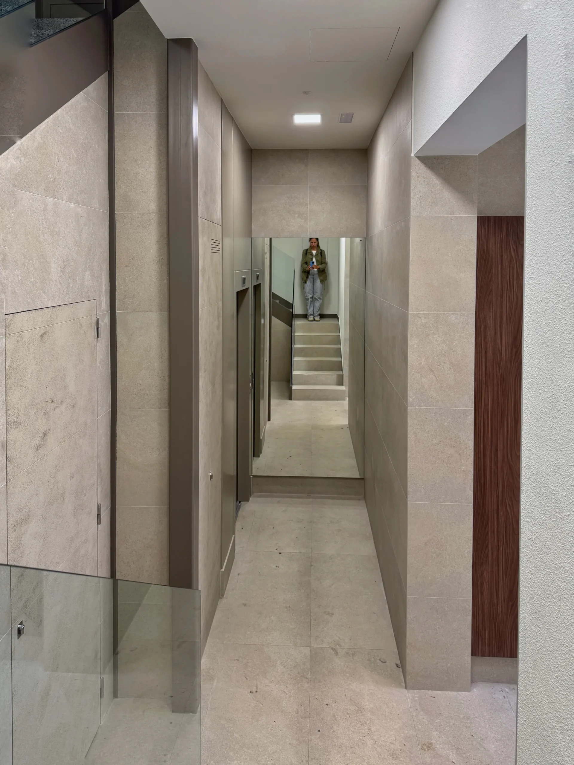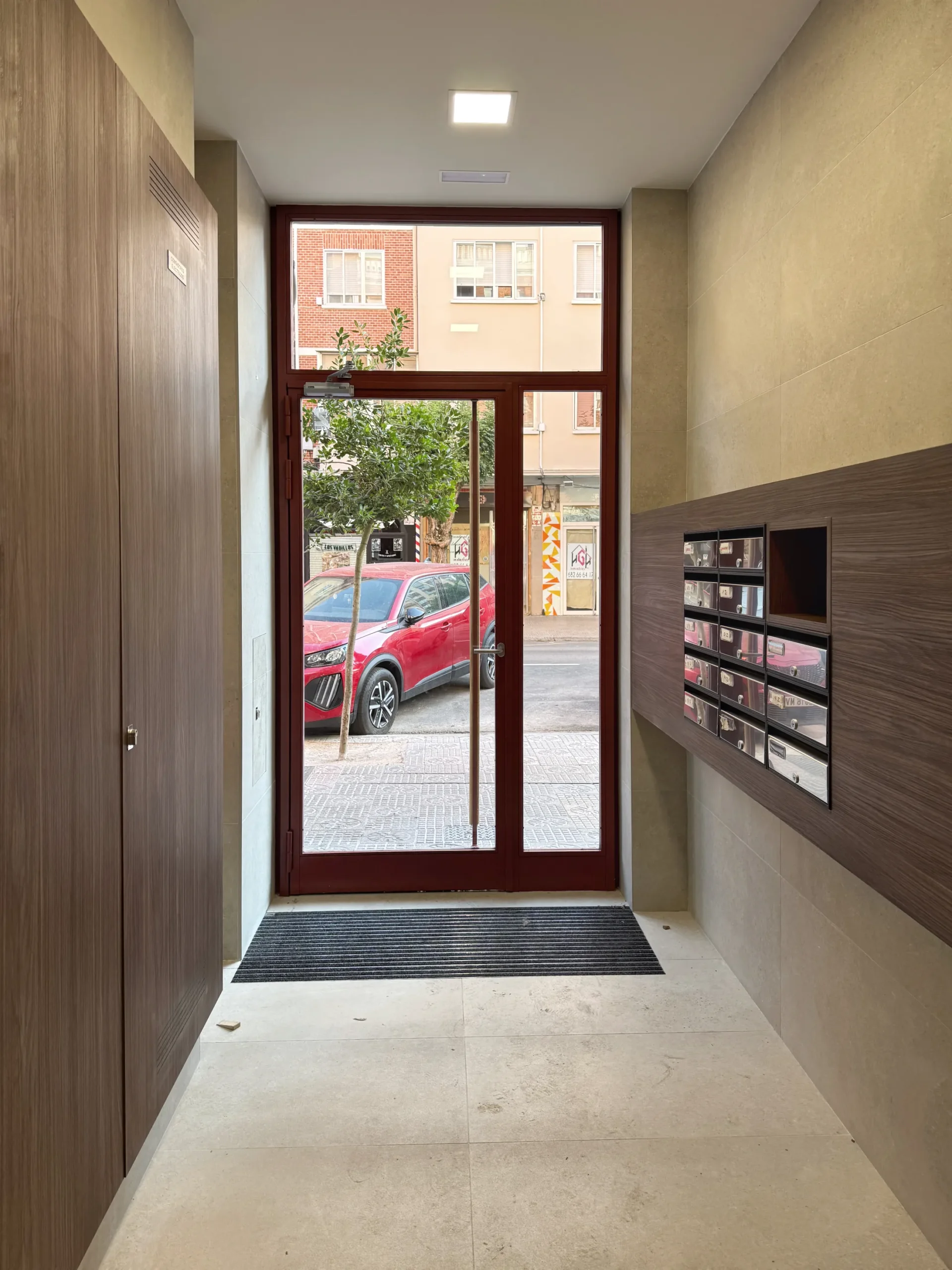 Rehabilitación de un portal de un edificio de vivienda colectiva, incorporando un ascensor a cota 0 para garantizar la accesibilidad universal. La intervención combina materiales cálidos y duraderos con un diseño limpio y contemporáneo, logrando un espacio adaptado a las necesidades actuales de los vecinos.